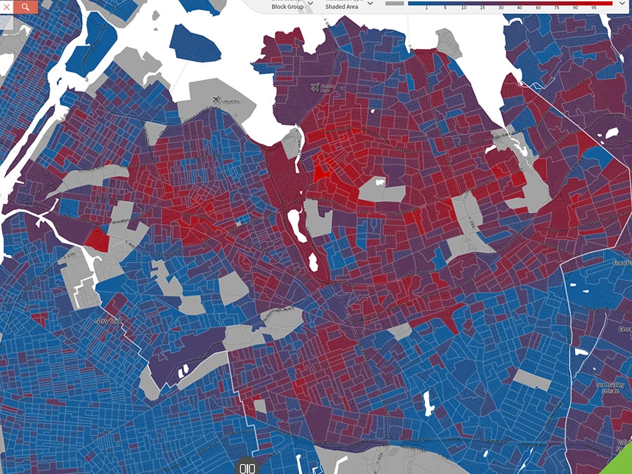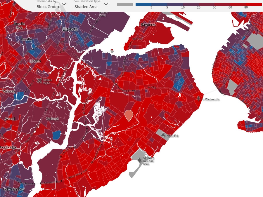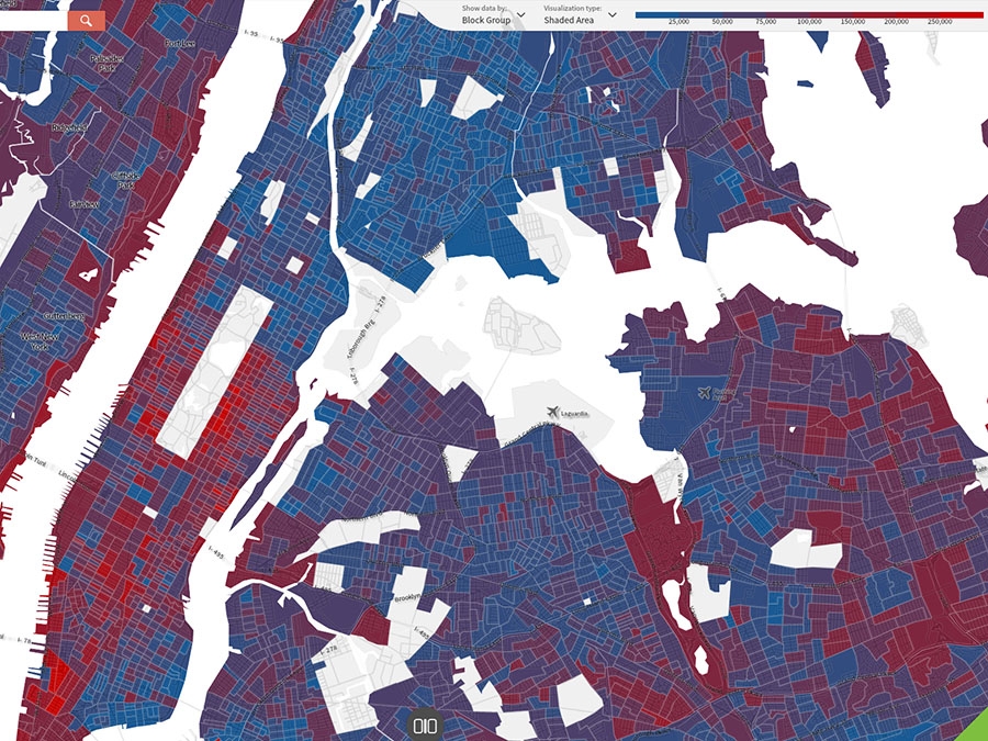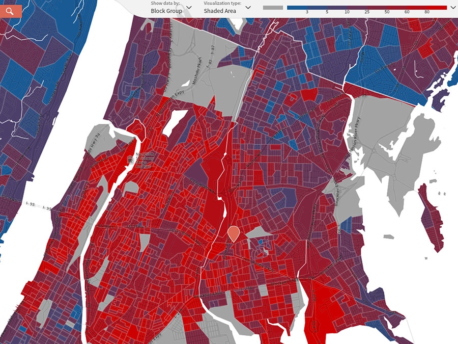 Data is shown on the Census block group level — larger than a Census block, smaller than a Census tract.